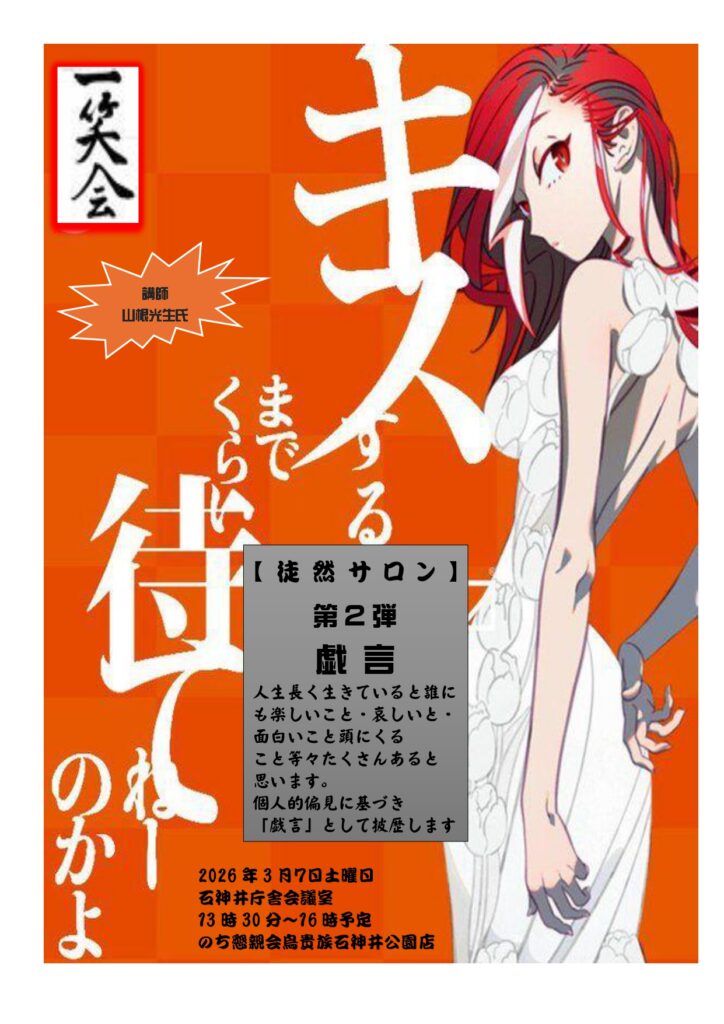 | 第13回 | 2025/2 | 徒然サロン(3/4人生のエポックにおける出来事) | 山根 |